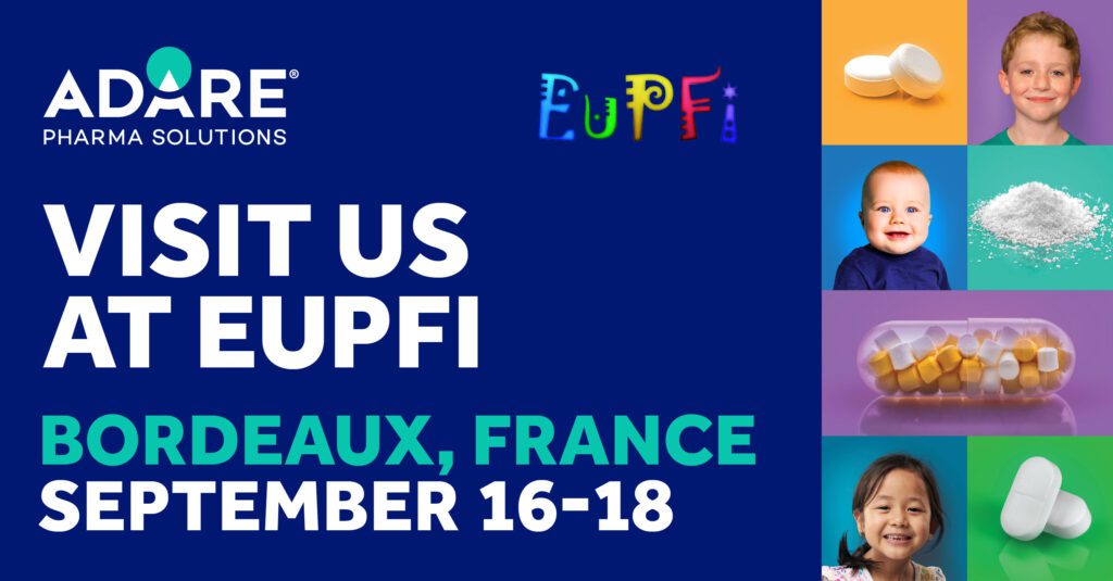Venite a trovarci alla 17a Conferenza dell'Iniziativa Europea di Formulazione Pediatrica (EuPFI) 2025 a Bordeaux, Francia! Fare clic sul pulsante qui sopra o inviare un'e-mail a BusDevROW@adareps.com.